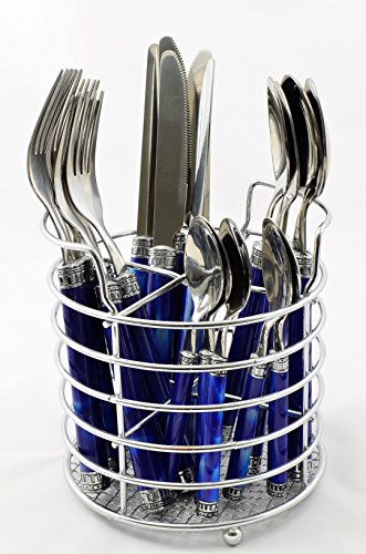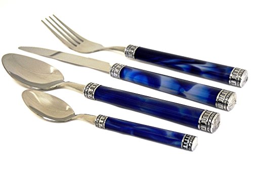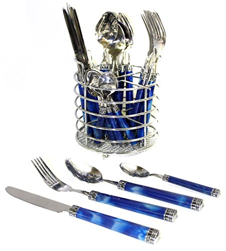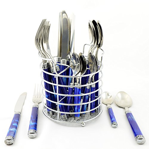 Nature Home Decor RE6126 Rainbow Elite Collection Flatware Set of 24-Piece Service of Six with Elegant Blue Marble Design Resin Handles and Stainless Steel Caddy