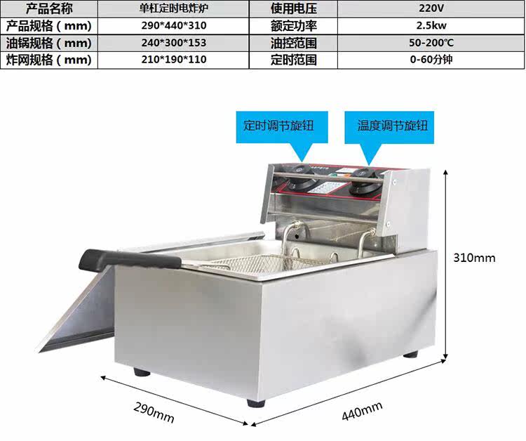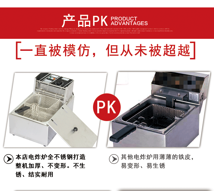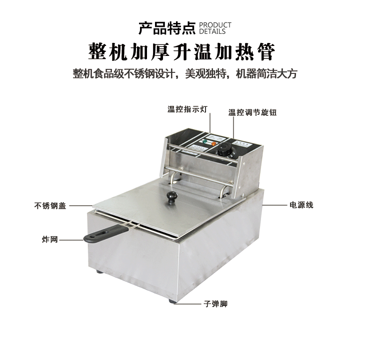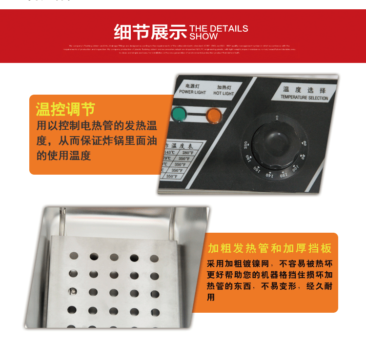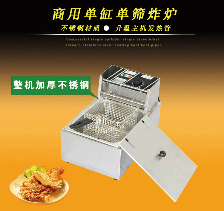 近期,有很多相同款式的电炸炉横空出世,以低价出售!本店慎重提醒用户,整机采用0.75加厚板材制作,304不锈钢发热管,整机保修1年!山寨货都是用05的板材。油炸都是高温,在网上不是价比价!我们拒绝暴利!绝对价低物美!最后再郑重承诺 我们的炸炉是200-300度温控炸油条绝没问题 不锈钢锅0.75加厚盆 如假包退 绝对厂家直销 只需145元 除偏远地区以外 全国包邮 欢迎订购 诚招全国代理商 给你意想不到的价格