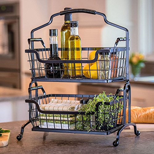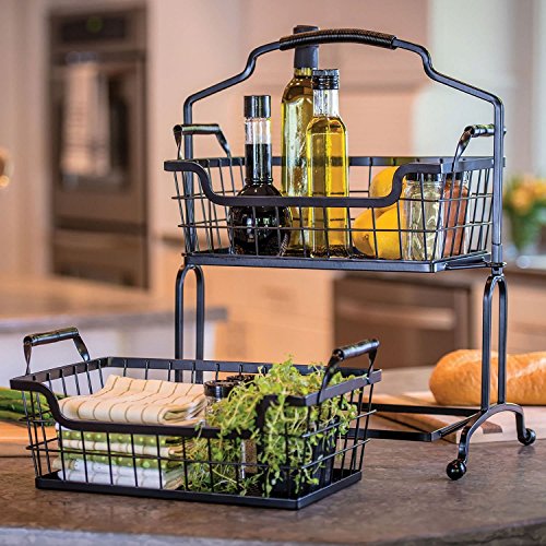 Two-Tier Brushed Wrought-Iron Basket With Arched Handle