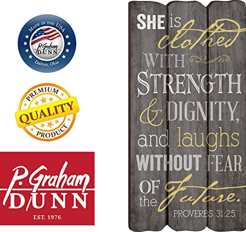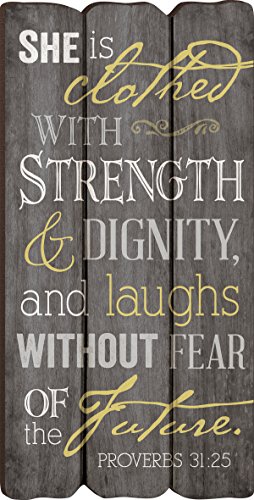 She Is Clothed with Strength Proverbs 31:25 Small Fence Post Wood Look Wall Art Plaque