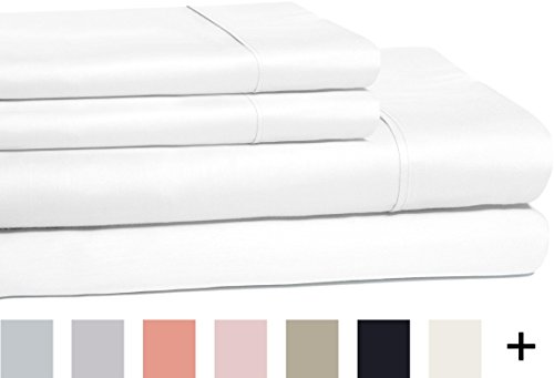 Superior 100% Cotton, 300 Thread Count Wrinkle Resistant, Easy-Care 4-Piece Queen Sheet Set, White