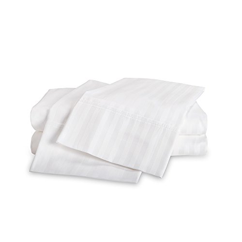 650 Thread Count - Egyptian Cotton Striped Sheet Set by eLuxurySupply, King, White