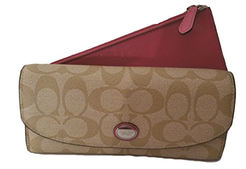 -. Title : Coach Peyton Signature Envelope Wallet with Pouch Light Khaki & Strawberry - Style 49154