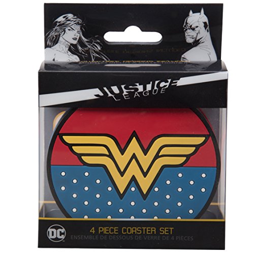 DC Justice League Super Hero Coaster Set - Batman, Superman, Wonder Woman, The Flash - Set of 4, PVC