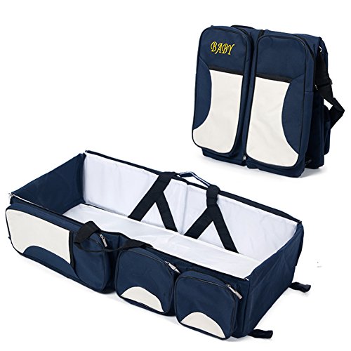 -. Feature : 3 IN 1- The bag can function as a baby travel bed, storage bag and a diaper changing station, making your travel with baby more convenient. / AS A STORAGE BAG- The bag comes with 5 zippered pockets to hold baby's things, like diapers, tissues and so on, among which, 2 pockets hold feeding bottles with insulated layer to keep warm or cool. / A TRAVEL BED AND STATION- Opening the bag, a baby crib appears. The bed is large enough to hold a baby shorter than 70cm/27.5inch. Traveling with a baby is not easy but this bag can used as a travel bed and a diapering changing station to help you solve some problems easily you might meet when you are traveling with your baby. / MATERIAL- Made of 300D and 210D Oxford Fabrics,100% eco-friendly. This 3-in-1 multipurpose bag has sturdy construction,and you can put a soft mattress or throw so your baby can have a comfortable sleep. / HOME AND TRAVEL- This multipurpose diaper bag is made to use indoor and outdoor. Easily portable and folds within seconds. Can be used to replace your current changing mat at home or as an additional napper at your baby's grandparents' home! Enjoy the freedom and relax while your baby is comfortable and safe!
