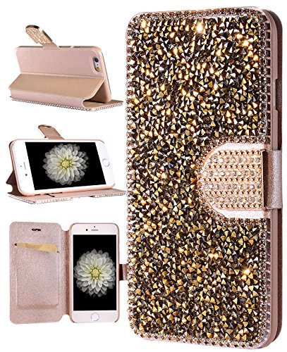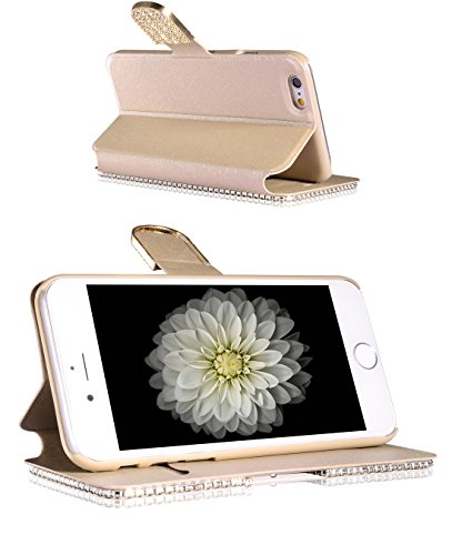 Package:1*iPhone 6/6s plus (5.5") Handcraft Luxury Bling Rhinestone Wallet Case Ultrathin Magnetic Kickstand Crystal Leather Book Cover