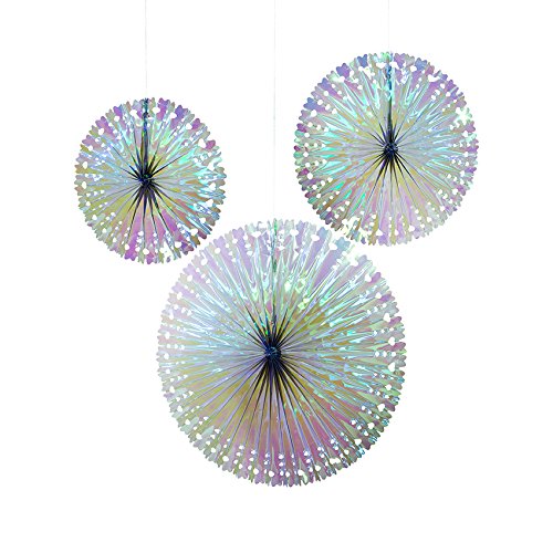 Talking Tables Decadent Decs Iridescent Fans in 3 Sizes Oil Effect for Home and Party Décor, Petrol (3 Pack)
