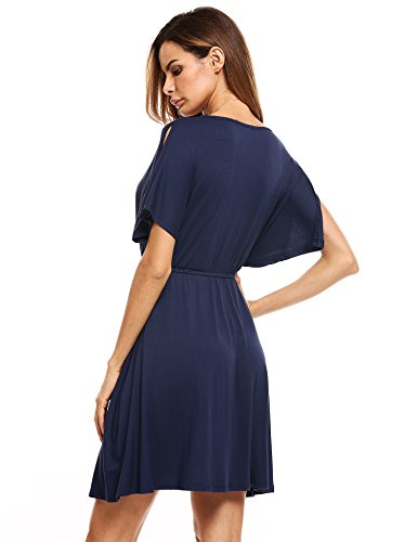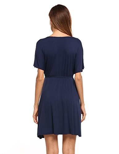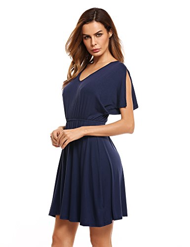 Zeagoo Women V-Neck Split Sleeve Solid Summer Casual Empire Dress Specifications: Please check your measurements to make sure the item fits before ordering. 1. Use similar clothing to compare with the size.