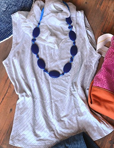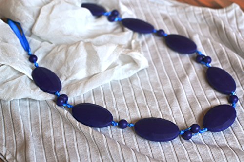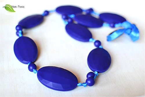 Silicone Teething Necklace - by Modern Ohana - BPA Free, Silicone Jewelry for Mom and Baby (Flat Textured Oval with Small Beads) (Navy)