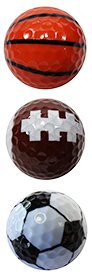 -. Feature : football, basketball, and soccer ball printed golf balls / great novelty keepsakes and gifts! / USGA conforming golf balls / golf balls that play and hit just like standard golf balls