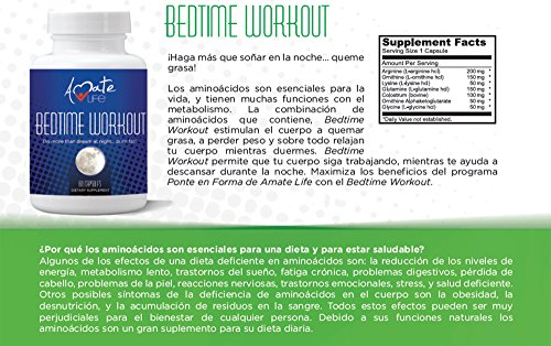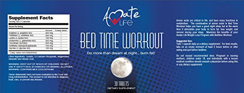-. Feature : STIMULATES YOUR METABOLISM WHILE YOU SLEEP - Bedtime Workout stimulate your body to burn fat, lose weight, and recover energy levels during sleep. / AMINO ACIDS IS THE KEY TO WEIGHT LOSS - The systematic supplementation of certain amino acids allows us to stimulate the body to produce enough fat-burning hormones in a natural manner and in harmony with the body's needs. Amino acids are at the basis of all life processes, as they are absolutely essential for every metabolic process. / WAKEUP RE-ENERGIZED - Bedtime Workout allows your body to keep working and burning fat, while still helping you have a good night sleep. You'll have a restful sleep and feel full of energy in the morning. / MADE IN FDA CERTIFIED FACILITY - We proudly manufacture all our products in the USA with the best NON-GMO ingredients and in FDA certified facilities. / 100% SATISFACTION GUARANTEED - We want you to be completely satisfied. If you are in any way dissatisfied we'll refund your money. No questions asked.