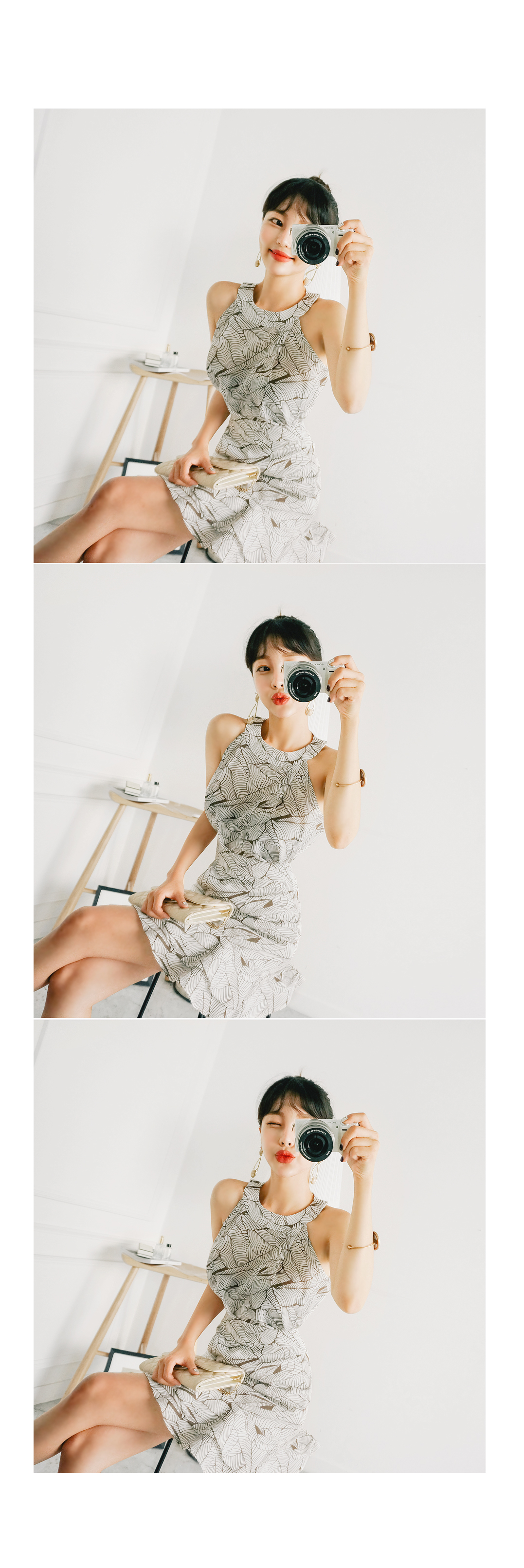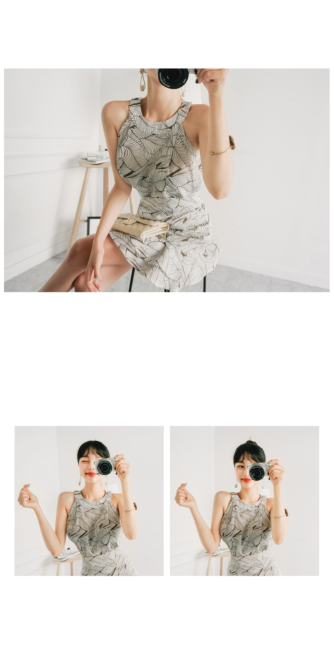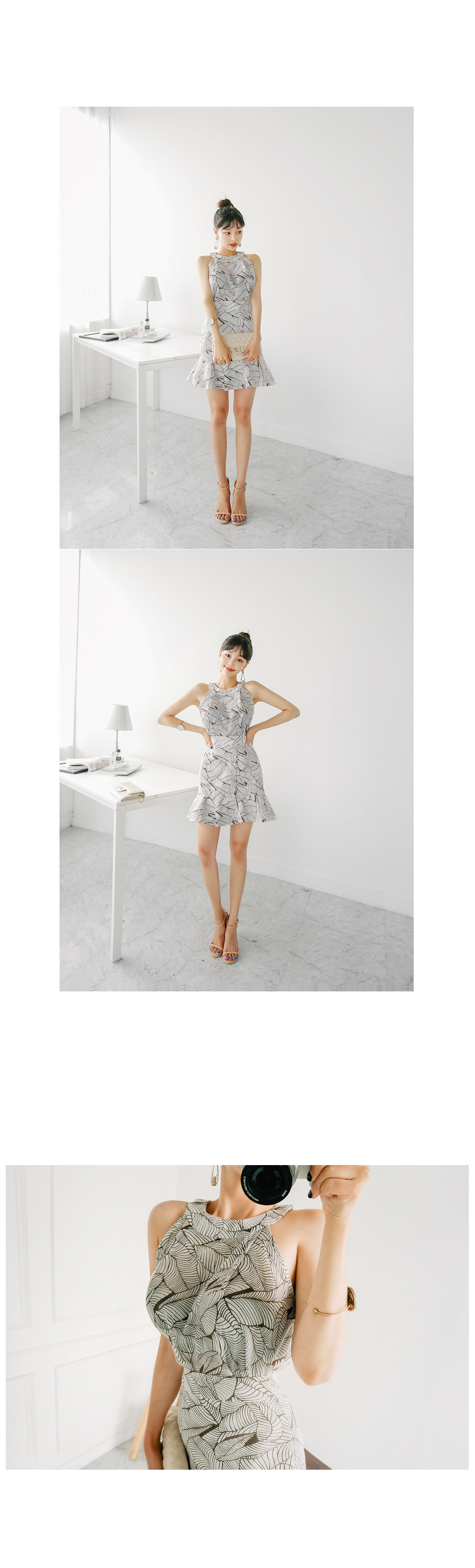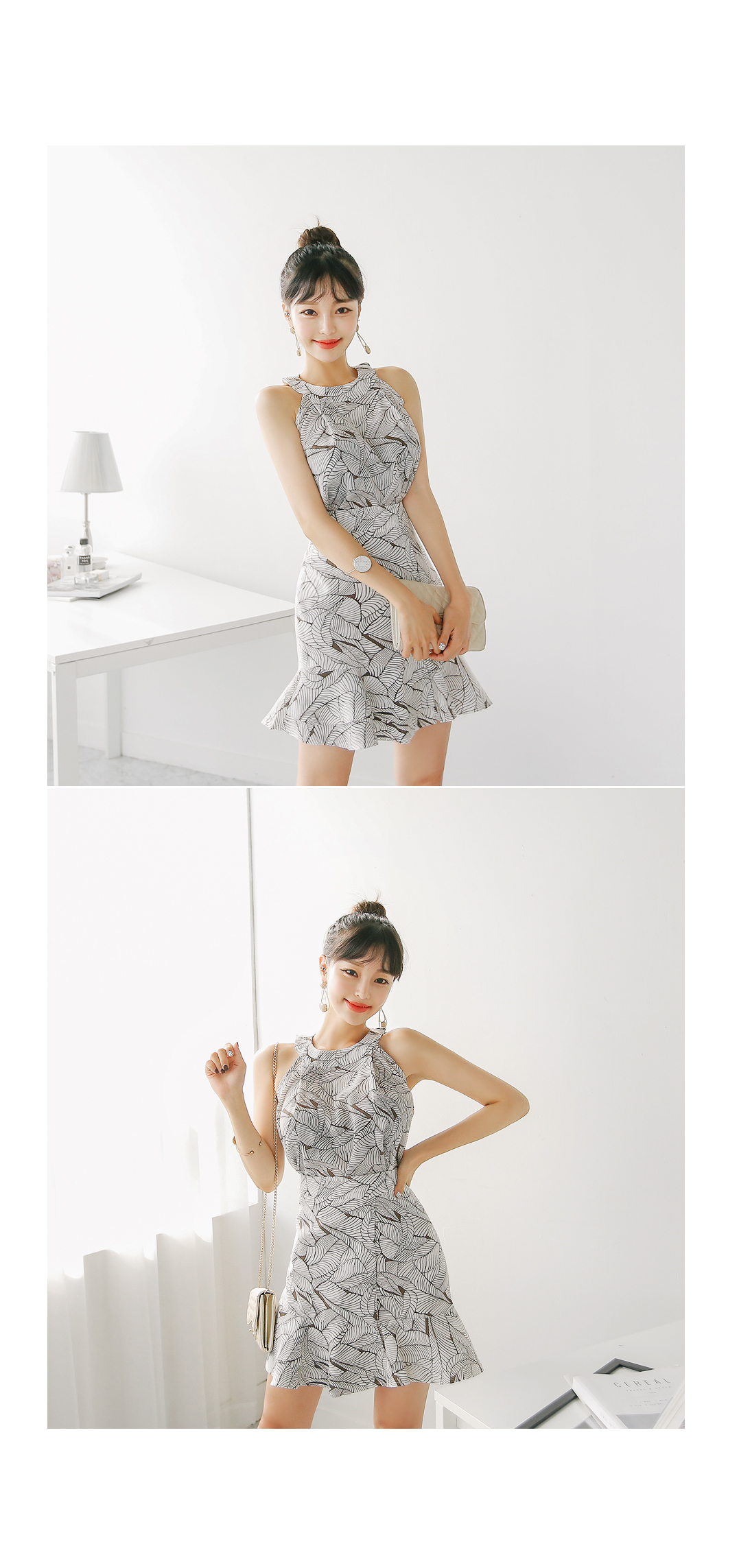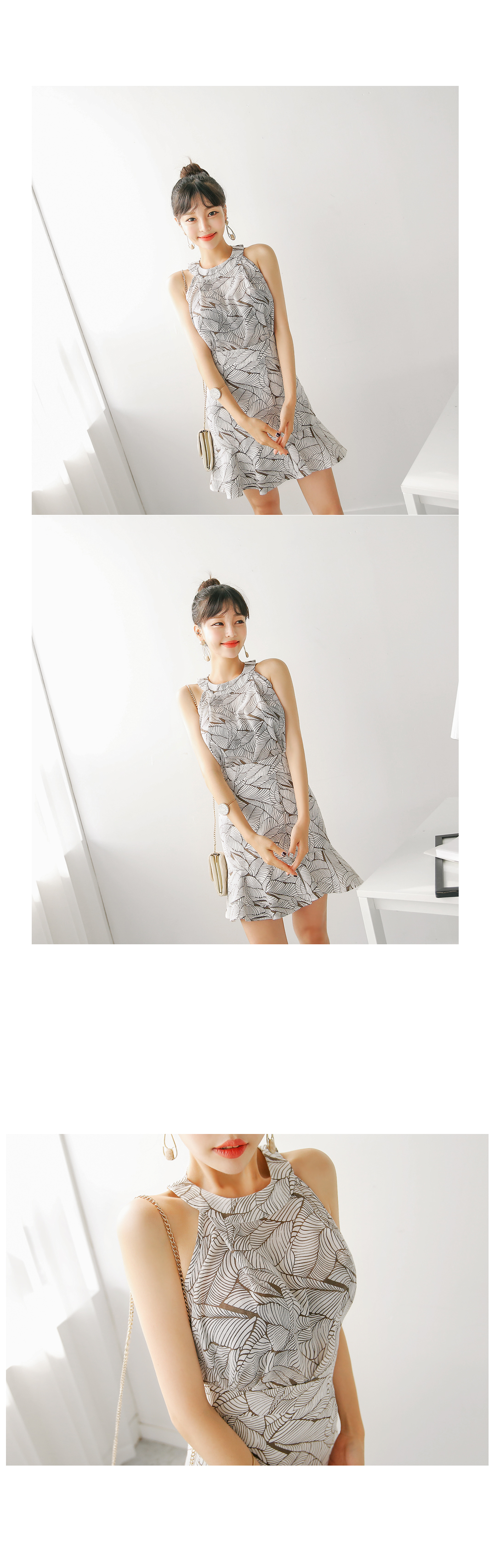 어깨라인이 드러나는 홀터넥 디자인으로,