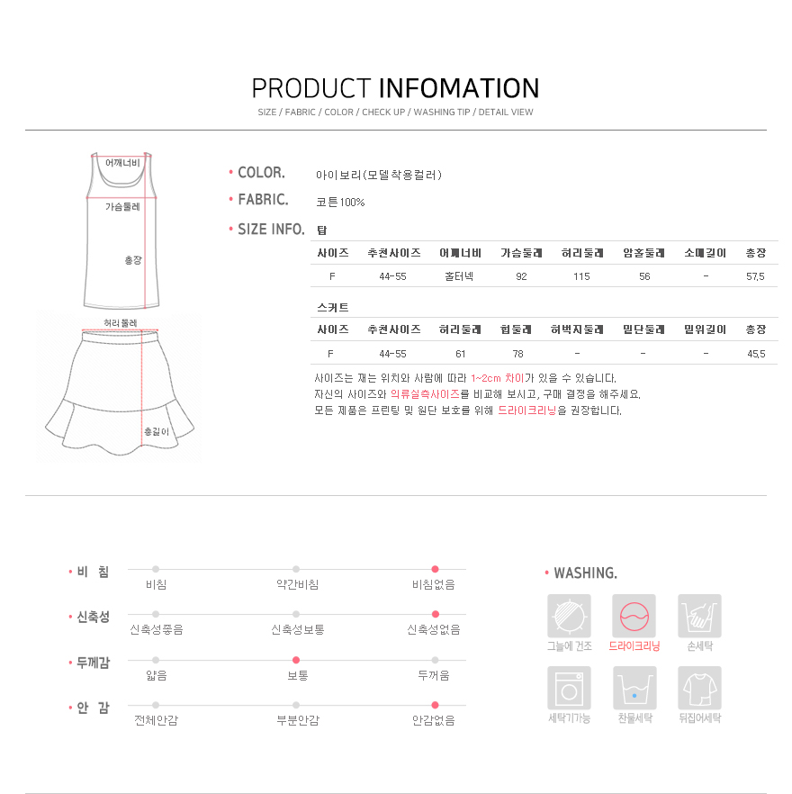 아이보리 1 가지로 나왔어요.