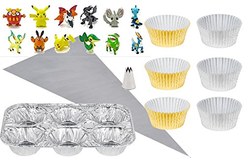 -. Title : Pokemon Cupcake Birthday Party Kit - 28 Gold Baking Cups, 3 Piping Bags, 2 6-Cup Baking Tins, 1 Steel Pastry Piping Tip, 12 Assorted Pokemon Characters