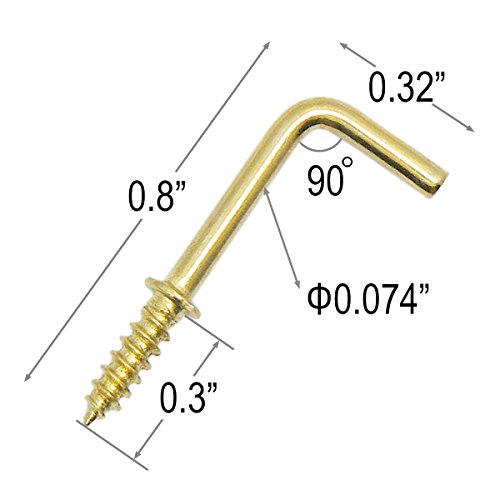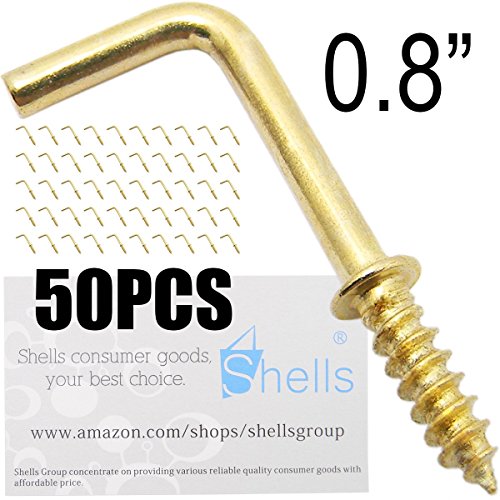 Shells 50PCS Gold Color Copper Plated Metal Right-angle Hooks 7 Shape Screw Hooks Self-tapping Screws Hooks L Shape Hooks 0.8 Inch 1/2#