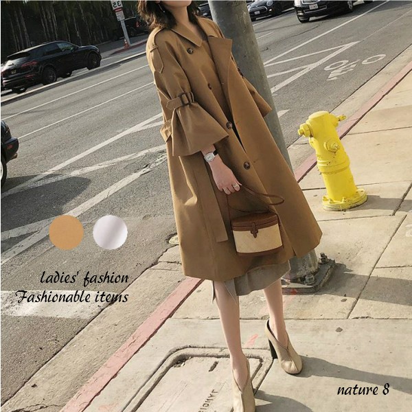 〓〓〓〓〓〓〓〓おしゃれなフレアースリーブデザインのトレンチコートウエストにはベルト付デザイン後ろの裾部分はおしゃれなボタン使用のスリット入裏地付で着脱時のすべりも良く軽くて着心地抜群エレガントスタイルにもカジュアルなスタイルのアウターとしても大活躍間違いなしのトレンチコートです〓〓〓〓〓〓〓〓◆素材◆コットン/ポリエステル/裏地付◆サイズ◆/フリーサイズ/バスト110cm前後/肩幅ラグラン/袖丈26cm前後(脇下~)/着丈103cm前後◆カラー◆キャメル/ホワイト系サイズは平置きの状態で表記させて頂いております〓〓〓〓〓〓〓〓商品のご案内(予約商品の場合3月中旬発送予定)海外輸入商品の為リーズナブル価格でご提供をさせて頂いております為、下記の事項をご確認ご了承の上ご注文をお願い致します。♯生産輸入の関係で発送日が前後する場合がございます。♯再生産の関係で画像とデザイン、多少の色具合が異なる場合がございます。♯メジャーでの測定の為若干の誤差はご了承下さい。♯海外生産の為縫製、素材等少し粗めの商品もございます。♯海外代理店より輸入の為、商品タグ、洗濯表示がない場合がございます。