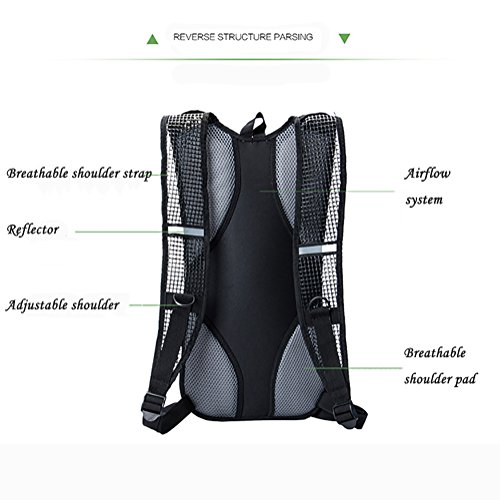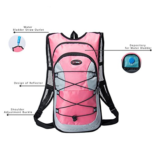 Feature:?? High?utilization?of?the?main?storage?space,can?be?easily?put?some?daily?necessities,?clothes?and sporting?goods?besides?the?water?bladder.? Integrated?breathable?mesh?pad?in?the?back,breathable?and?not?muggy,?air?flow?channel?design.? Include?a?tube?;to?keep?your?hydration?bladder?tube?in?place. Quick?release?structure?of?the?water?pipe. Including?water?pipe?protective?cover. Clean?up:?the?number?of?new?products?will?be?a?little?taste,?but?not?the?smell,?you?can?remove?the?tea?soaked,?salt?water?sterilization.