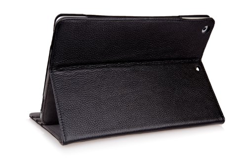 Bear Motion for New iPad 2017 and iPad Air 1 - Genuine Cowhide Leather Case with Hand Strap, Built-in Stand and Auto Wake/Sleep Function for Apple iPad Air 1 (Black)