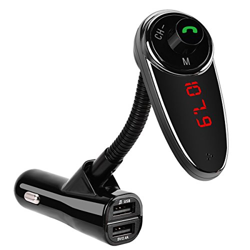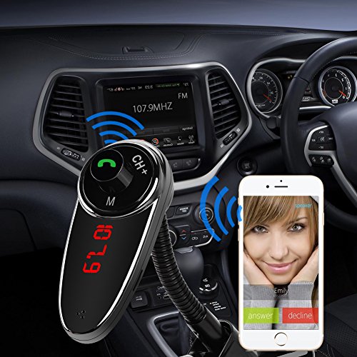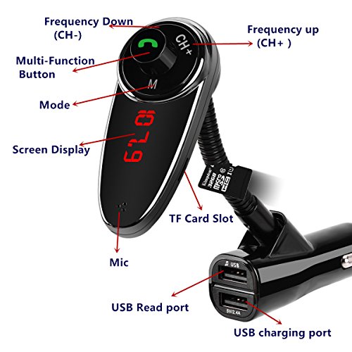 Car Bluetooth FM Transmitter Wireless for Car Radio Adapter Car FM Transmitter Hands Free Calling W LED Display 2 USB Ports/TF Card Port