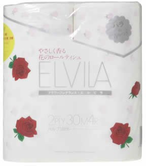 "Elvira Fragrance Toilet Paper Rose Scent 4R (Double)" is pulp 100%, two piled toilet paper.