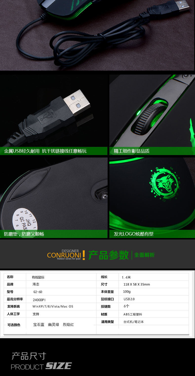 海志G2有线鼠标 家用办公炫酷游戏鼠标usb接口台式机笔记本通用