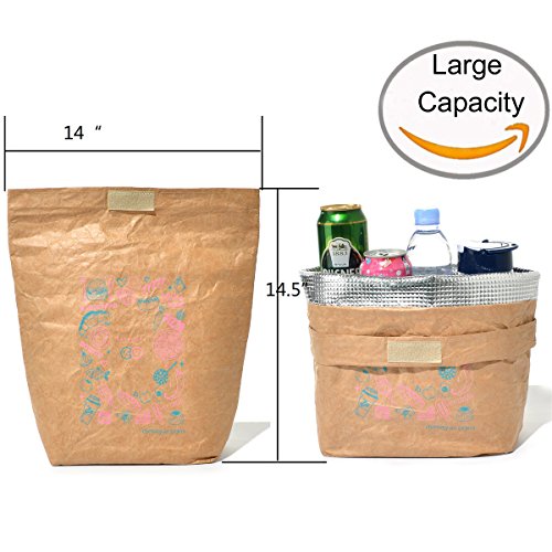 Lunch Bag,14"x14.5" Made of Reusable Brown Paper Lunch Bags Insulated Lunch Bag Lunch Box Strong Water Resistant Tear Proof with Velcro Closure