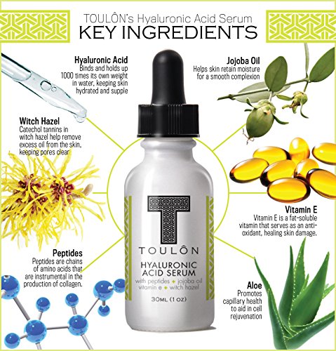 -. Title : Hyaluronic Acid Serum for Face with Peptides, Jojoba Oil, Vitamin E & Witch Hazel; Reduce Wrinkles & Sun Spots; Natural & Organic: Free Gift/No Risk
