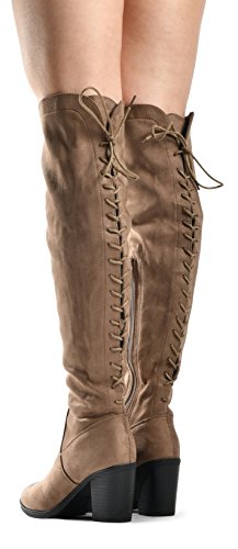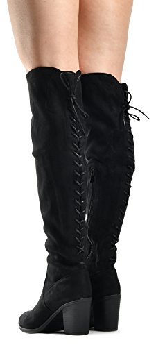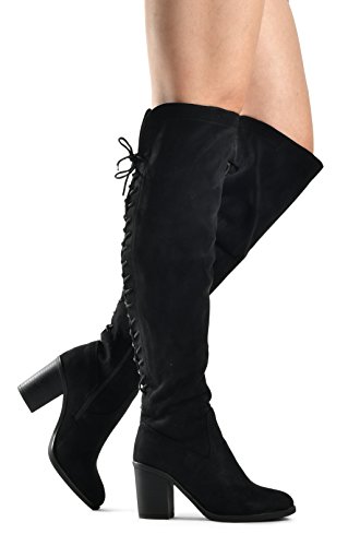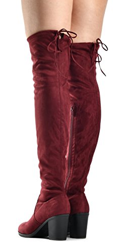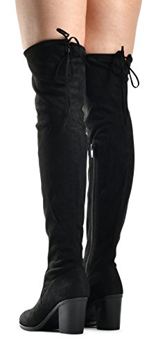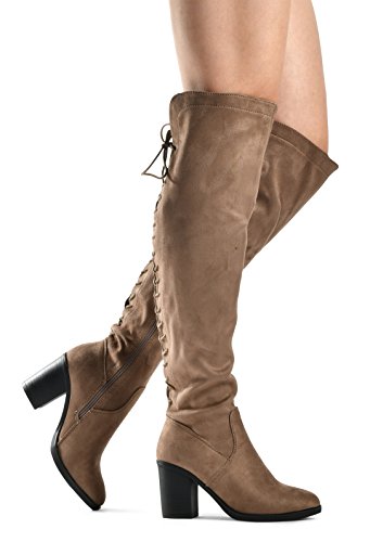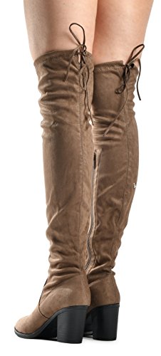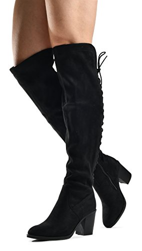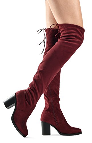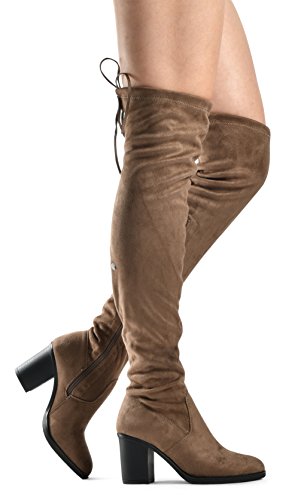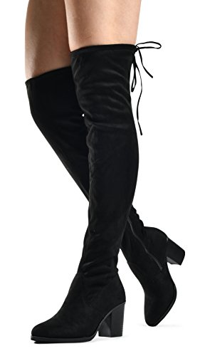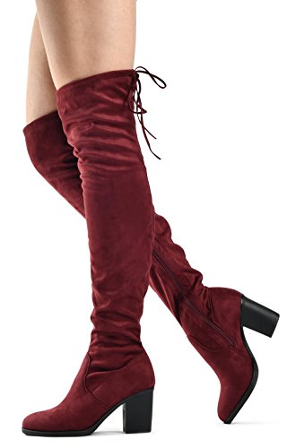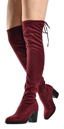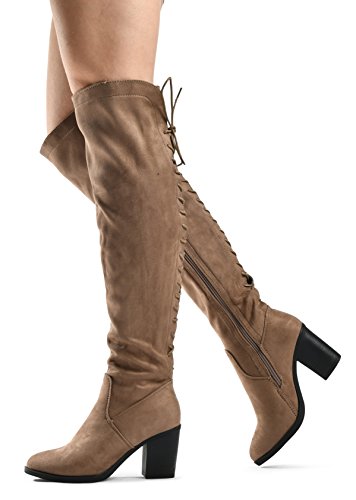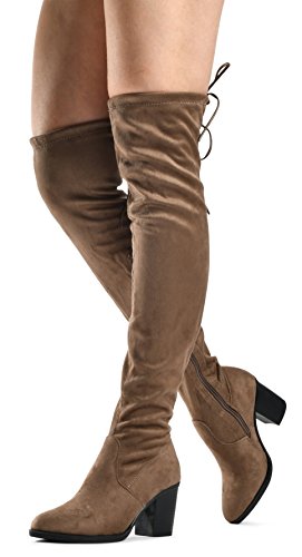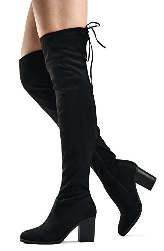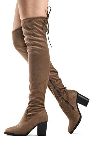 Women's Over The Knee Verona Low Stacked Block Chunky Heel Pointy Almond Toe - Stretchy Thigh ...