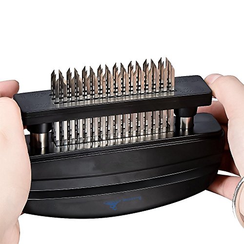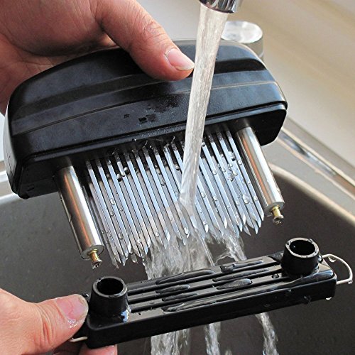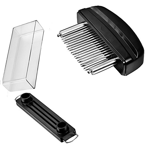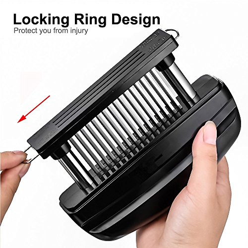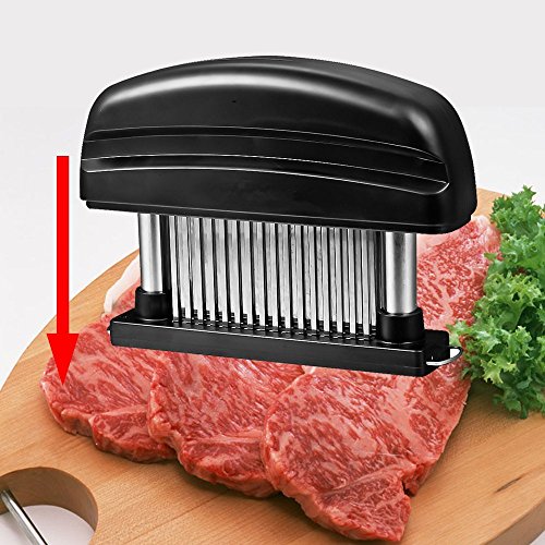 48 Stainless Steel Meat Tenderizer is great kitchen tool for housewife and chef when you cook meat. How to use it 1. Align 2 pillar to base hole and push down 2. Grip the handle, remove it over the meat, press down 3. Push 2 locker ring inside 4. Assemble protective plastic cover How to clean it 1. Pull 2 locker to outside 2. Hold the body and pull up 3. Clean it with water Product Material: ABS stainless steel Tips : The product is very sharp, so stay away from children. Clean and dry the water after use. 0 |