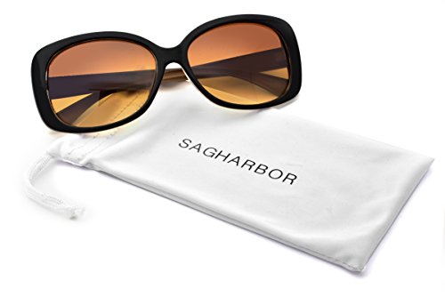 Sag Harbor Women's Rectangular Sunglasses, Black Frame with Tan Interior, APG Brown Lens, 58mm