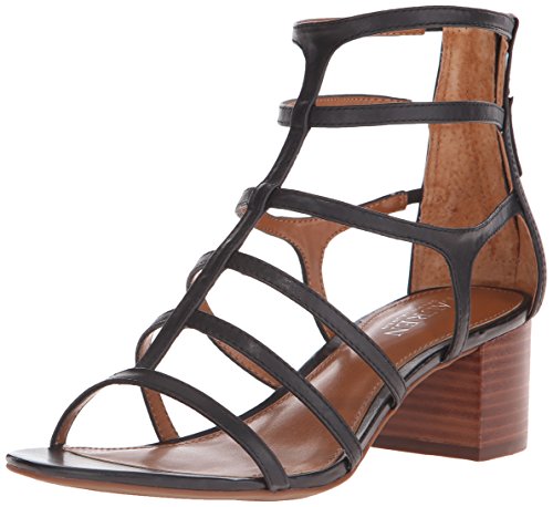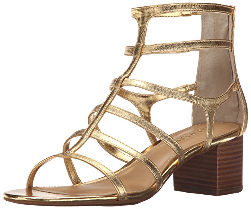 Gladiator-inspired sandal featuring strappy cage upper and closed heel cup with zipper