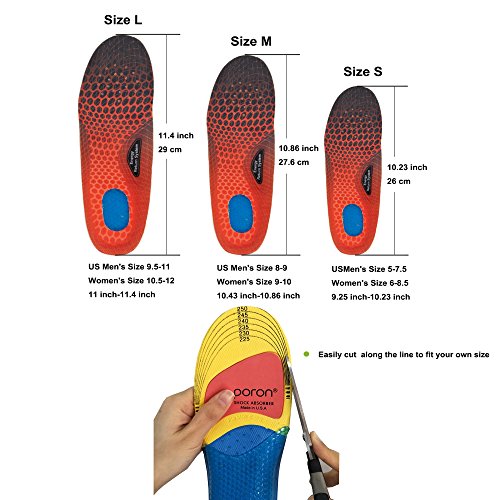 - Available in Different Sizes: US Women's Size 6-8.5/Men's Size 5-7.5 (8.86-9.84 inches);US Men's Size 8-9/Women's Size 9-10(10.04-10.43 inches);US Men's Size 9.5-11/Women's Size 10.5-12(10.63-11.02).For the most accurate size,pls compare to your own insole length.