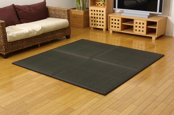 表地=い草(九州産) ※普通織 中材=低反発ウレタン10mm+フェルト12mm 裏=連結用ジョイント付き ヘリ=PP、PE