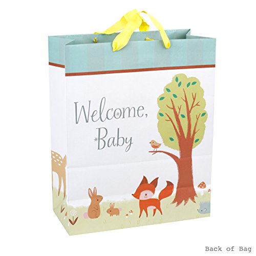 Studio : Hallmark Publisher : Hallmark Binding : Kitchen Product Description Adorable bag to celebrate the arrival of a new baby features a deer, fox, turtle, bird, and tree along with an aqua edge trim, yellow ribbon handle, and owl gift tag; tissue paper is also included to complete the package. This bag measures 12.5 inches wide by 15.5 inches tall by 5.75 inches deep and can support up to 10 pounds. Included is one gift bag, tissue paper, and a gift tag; the bag can hold books, clothing, stuffed animals, puzzles, or fashion dolls. Hallmark gift bags are made with paper from well-managed forests. Hallmark was founded in 1910 when 18-year-old J.C. Hall arrived in Kansas City, Missouri, with a couple of shoeboxes of postcards under his arm and the American dream in his heart. Hallmark greeting cards are sold online and in nearly 40,000 retail stores across the globe and people continue to recognize the iconic Hallmark brand as "the very best." 0
