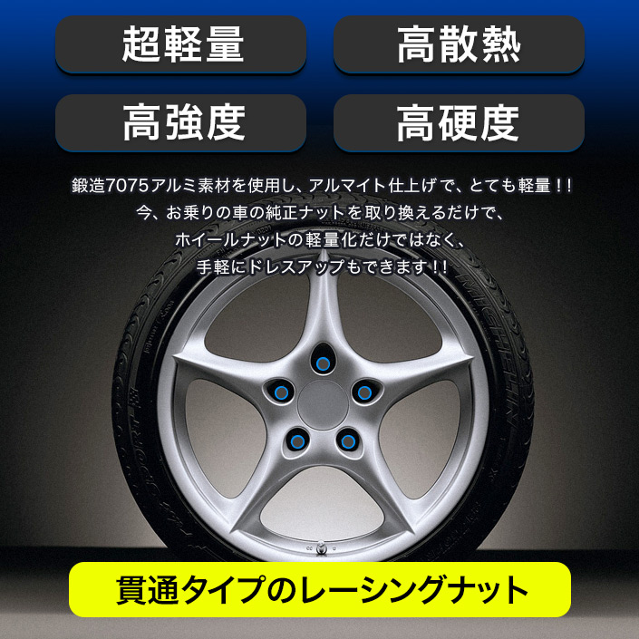 ●今、お乗りの車の純正ナットを取り換えるだけで、ホイールナットの軽量化だけではなく、手軽にドレスアップもできます!!