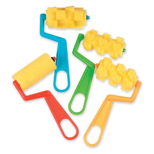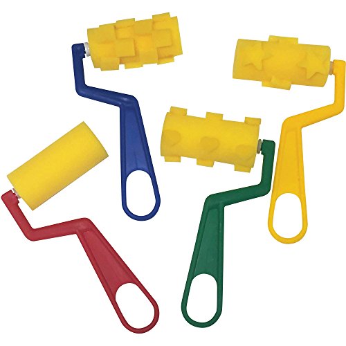 Foam Paint Rollers are designed to apply paint in patterns. The four rollers have stripe, checkerboard, flower and heart patterns.