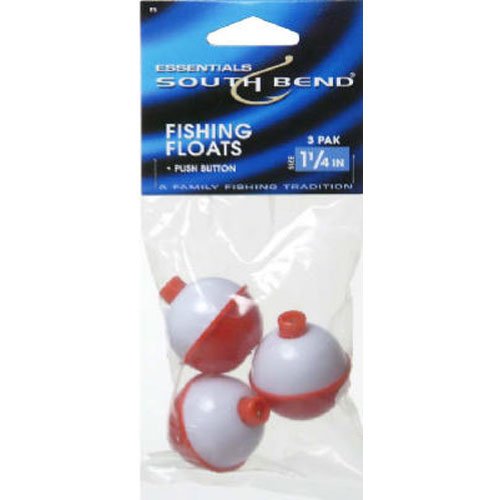 -. Binding : Sports -. Brand : South Bend -. Feature : Durable and long-lasting / Easy to push button release / Red and white / Float size: 1 1/4"Pieces: 3 -. Label : South Bend -. Manufacturer : South Bend -. Model : 159194-Parent-Parent -. ProductGroup : Sports -. ProductTypeName : SPORTING_GOODS -. Publisher : South Bend -. Studio : South Bend -. Title : South Bend Red/White Push Button Float
