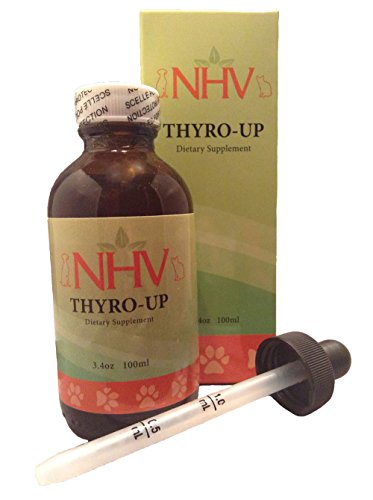 -. Binding : Misc. -. Brand : NHV -. EAN : 0688899602293 -. Feature : Natural herbal supplement that helps support dogs or cats with an underactive thyroid / Supports balanced hormone levels and maintains healthy thyroid function / Supports metabolism and weight management / Promotes healthy skin and coat / Helps elevate your pet's energy level -. Label : NHV -. LegalDisclaimer : Product Storage All NHV Natural Pet Products are pure herbal extracts and contain no artificial additives, preservatives or coloring. Shelf life after opening is 6 months and must be refrigerated after opening. Cautions and Contraindications Do not use Thyro UP in pregnant or nursing animals. Do not use if your pet has HYPERTHYROIDISM (over active thyroid gland). Speak to your vet before using our products. A second visit is recommended if your pet's condition does not improve, or deteriorates after continued use of the supplements. All information provided by NHV Natural Pet Products is for educational purposes only. -. Manufacturer : NHV -. NumberOfItems : 1 -. PackageQuantity : 1 -. ProductGroup : Pet Products -. ProductTypeName : PET_SUPPLIES -. Publisher : NHV -. Size : 3.4 oz (100ml) -. Studio : NHV -. Title : Hypothyroidism Support for Dogs and Cats: Naturally Helps Maintain Healthy Thyroid Function, Support Balanced Hormone Levels and Supports Weight Management | NHV Thyro-up -. UPC : 688899602293
