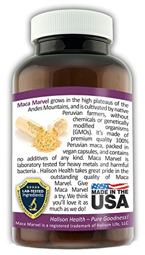 - LegalDisclaimer : *These statements have not been evaluated by the FDA. This product is not intended to diagnose, treat, cure, or prevent any disease. If you are pregnant or nursing a baby, seek the advice of a health professional before using this product. People allergic to maca or related vegetables like broccoli, Brussels sprouts, cabbage and cauliflower should not take maca. People taking anticoagulant medications, birth control pills or stimulants, people with high blood pressure and patients with breast or prostate cancer should be cautious when using maca. Always consult your doctor before starting a new supplement. Maca naturally contains starch, which can cause digestive discomfort for some people. Maca Marvel is a registered trademark of Halison Life, LLC