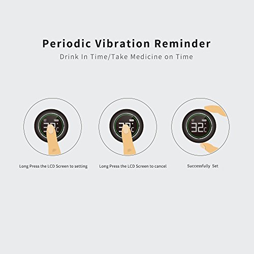 REGULARLY DRINKING REMIND --- It will remind you to drink water according to the time you set.You just need long press the LCD screen to display the alarm clock and set the time.When you want turn off the alarm clock,you also can long press the LCD and cancle the alarm clock.
