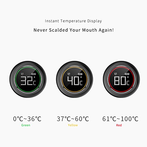 INSTANT TEMPERATURE DISPLAY & WARNING--- On the LCD screen, you can see the instant temperature display.And LED display light will change with the temperature of different color change! The color will change to green when the temperature is from 0 degree-36 degree. And when the temperature is 37 to 60, it will be orange. The red display from 61 degree to 100 degree. Now,your mouth no longer scald because of hot water.