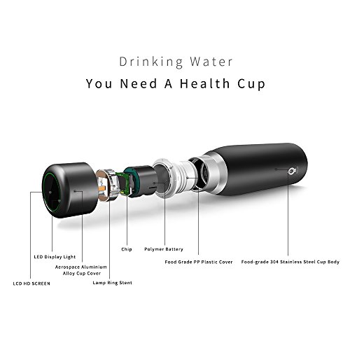 SPACE ALUMINUM and FOOD GRADE STAINLESS STEEL---This is the most important thing for a cup!!! Satfy! It made by space aluminum and food grade stainless steel!When you drink water, you don't need to worry about any safety issues cause by this samrt cup!