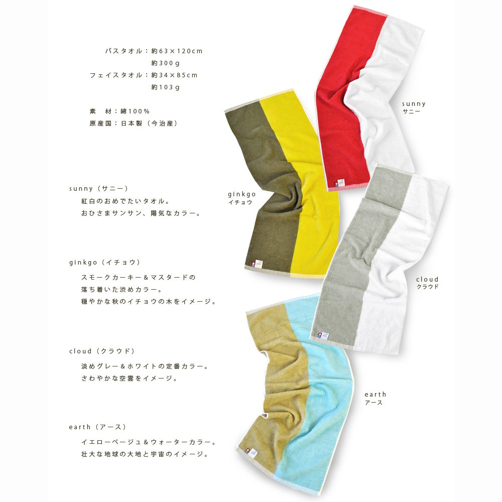 【4色】カラーは全4色。サニー / イチョウ / クラウド / アース 。