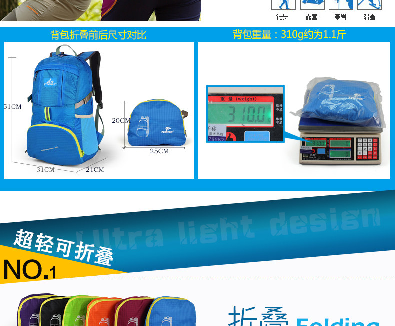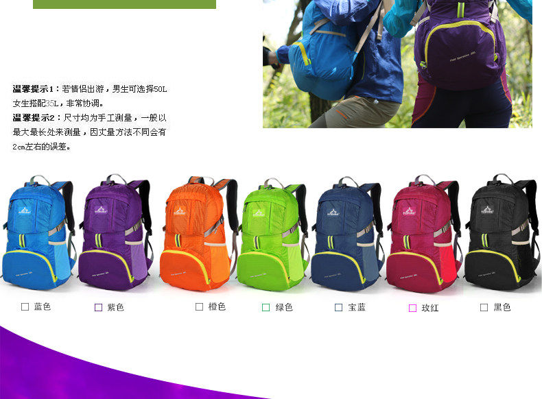 户外皮肤包可折叠双肩包女男 运动户外包超轻防水背包30l