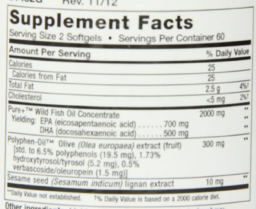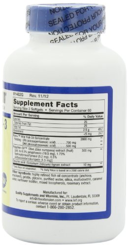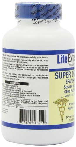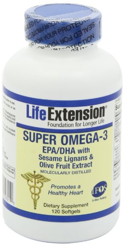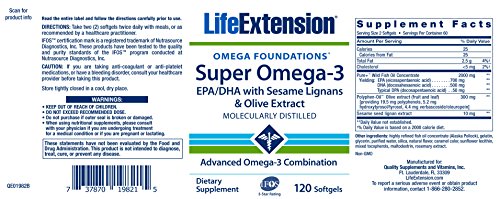 Life Extension Super Omega-3 Epa/Dha W/Sesame lignans & Olive Extract 120 Softgels is a pure, fresh fish oil made from sustainably harvested Alaska Pollock and that has earned the International Fish Oil Standards' (IFOS) highest 5-star rating. Inspired by the heart-healthy Mediterranean diet, this superior formula also contains olive extract, sesame lignans, and natural lemon flavor, making it the most comprehensive omega-3 supplement for heart and cognitive health support on the market.Feature
