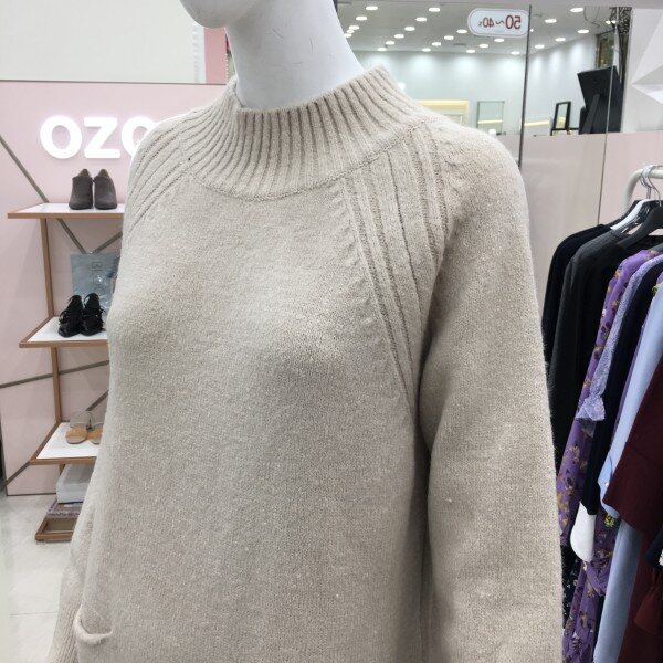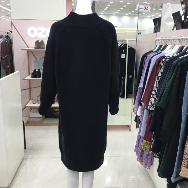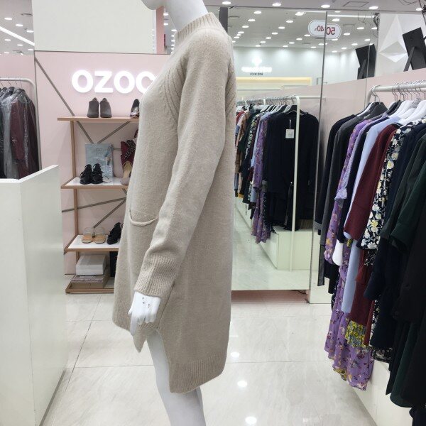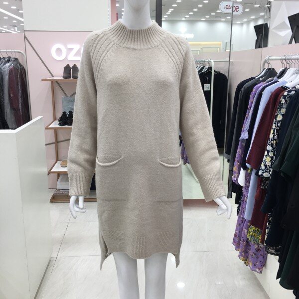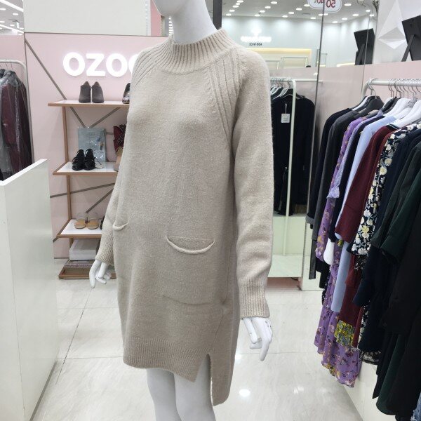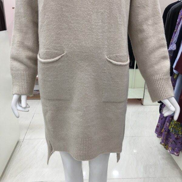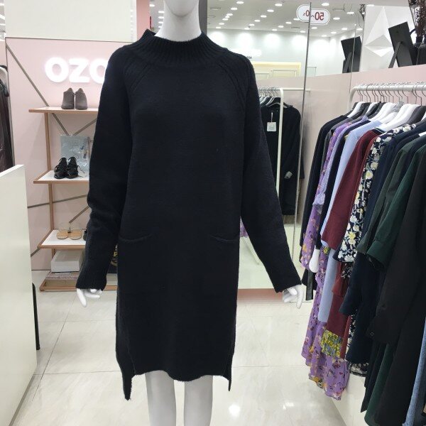 박시한 핏의 빅 포켓이 포인트 니트 원피스입니다.두께감 있고 포근한 느낌이 나 한겨울까지도 레이어드해서 입기 좋습니다.