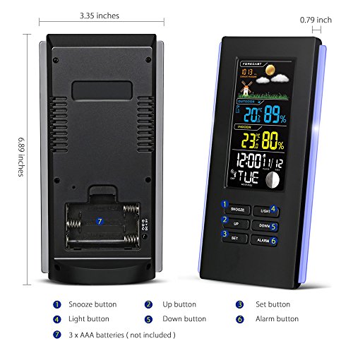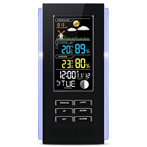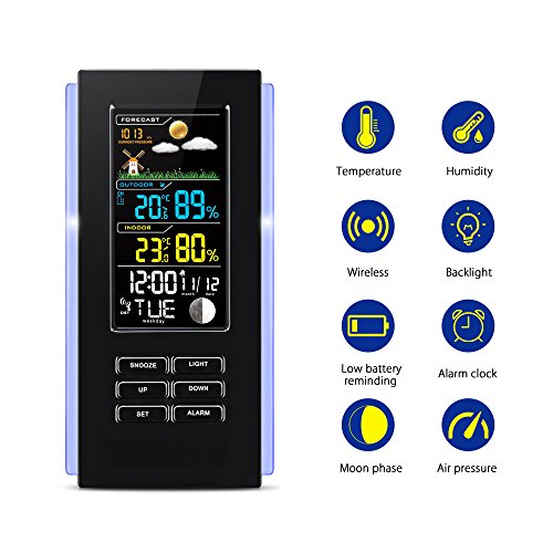 - 【Numerous display information& RCC receiving mode】the screen provides you time, date, weekday, indoor and outdoor temperature and humidity, moon phase, pressure and forecast weather, helping you prepare in advance.the WWVB receiving mode means you can get outdoor weather information without going out