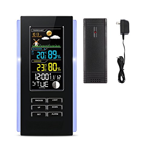 Wireless Digital Weather Station,Digital LCD Display Alarm Clock Calendar Function, Indoor/Outdoor Weather Monitor for Forecast/Temperature/Humidity-EarMe
