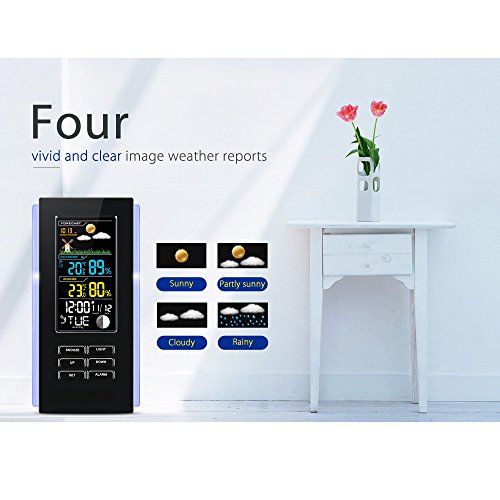 - 【Specific weather forecast&Multiple options】it forecasts four kinds of weather: sunny, partly sunny, cloudy and rainy. The image reports are vivid and clear.you can choose temperature in Celsius or Fahrenheit, and you can set time to twenty-four hours or twelve hours.