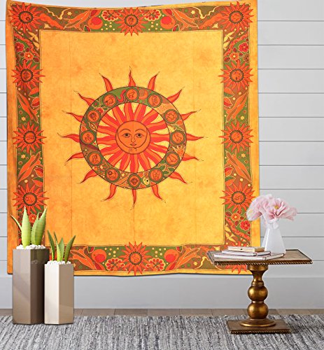 Studio : Divya Print Publisher : Divya Print Binding : Kitchen Product Description Divya Print Designer Queen Bedspread Tapestries Hippie Hippy Tapestry Throw Bedspread... Here's a gorgeous Indian Bedding / Tapestry / Throw that is 100% cotton and hand-dyed. Tapestry may be used to enhance the wall, on a couch, to decorate your ceiling, on a window or on a bed! Each piece is handcrafted. This bed sheet comes to you from the city of Jaipur in North-West India. Brighten your bedroom transform your bed with the royal grandeur of Indian culture. Go for a dramatic makeover of your bed and this bedspread will lend a spectacularly ethnic look and add style to your room. This exquisite piece of workmanship can also be used as a Massive Tapestry for huge walls which need a focal point! Don't miss this great deal. Guaranteed you'll love it These wonderful prints are a great way to add color to your bed, ceiling, and wall.. Tapestry can be used for: - ~FURNITURE COVERS ~BEDSPREAD ~TABLECLOTH ~BEACH BLANKET ~ROOM DIVIDER ~A GREAT AFFORDABLE GIFT ~HANG THEM ON YOUR WALL OR CEILING~! It will delight and enchant you~:-) .Also perfect to take along to a picnic or to the beach. For your comfort it is hand printed on 100% cotton, in spacious child free factories... Add an ethnic feel to your room with this cotton handmade wall hanging. Dimension: Queen Bedspread Wall Hanging Tapestry 230 x 210 CM, 90 x 84 inches (Approx). 0